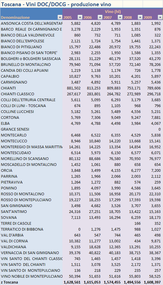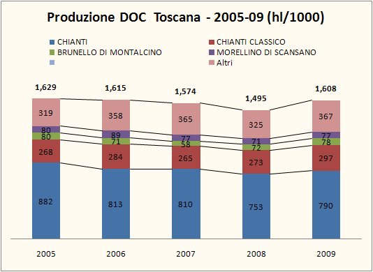 Toscana – produzione di vini DOC e DOCG – aggiornamento 2009