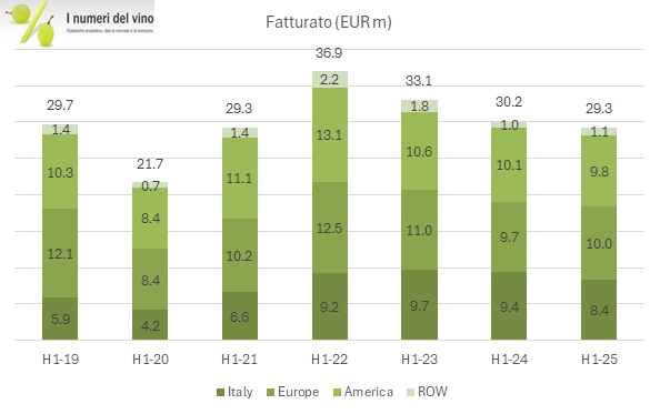 Masi chiude il primo semestre 2025 con ricavi in leggero calo (-3%) ma margini stabili, peraltro sui livelli molto bassi dello scorso anno. Due però sono le novità più importanti del gruppo: primo, l’investimento nel nuovo visitor center Monteleone 21 è finalmente terminato ed è stato aperto a maggio 2025. Secondo, l’azienda ha raggiunto (anche se non reso pubblico) un accordo di rifinanziamento del debito con le banche, che era stata la ragione per rimandare di una settimana la pubblicazione di questi dati.