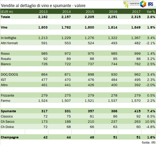 Devo dire che essere in volo verso San Francisco e la Napa Valley conferisce un bel contesto per scrivere di questo argomento, cioè l’andamento del primo mercato mondiale per il vino, gli USA. Nel 2017 secondo i dati di Wine Institute si sono consumati 36.3 milioni di ettolitri di vino per un valore di 62 miliardi di dollari. L’andamento resta positivo ma è un po’ meno marcato degli anni scorsi. Viene alimentato, come intelligentemente nota l’istituto, dalla crescita demografica degli americani che entrano nella “drinking age” che è di circa 1 punto percentuale all’anno, a un quasi impercettibile incremento della penetrazione del consumo che regala un altro punticino, per arrivare al 2%. Ci sono poi altri due punti di prezzo-mix che portano al 4% medio degli ultimi 5 anni. E’ interessante notare come tra i fattori che aiutano il prezzo mix sia menzionata la vendita diretta e le sale di degustazione che hanno raggiunto in USA 2.7 mililardi di dollari dei 62 totali e 5.8 milioni di casse di vino… tanto, soprattutto perché dividendo esce 51 dollari alla bottiglia! Ragazzi che business che fanno… e tra 48 ore sarò anche io vittima di uno di questi, St Supery. Vi racconterò a tempo debito. Passiamo ai dati.