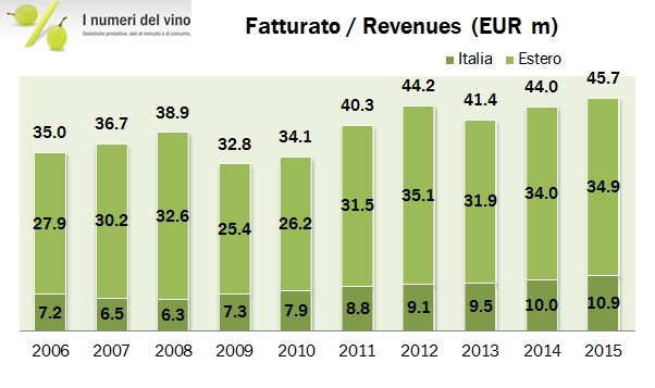 Dopo qualche anno di assenza, ripropongo oggi i numeri di Zonin, di cui sono riuscito a ottenere i bilanci. L’azienda ha in questi anni messo a segno un forte progresso commerciale (le vendite sono raddoppiate tra il 2009 e il 2015), anche se i margini restano molto bassi per via della struttura del modello di business e l’utile netto è stato fortemente impattato dalle perdite sulle coperture cambi. Infatti Zonin tiene fuori dal perimetro aziendale le tenute italiane (mentre sono incluse quelle estere), che assorbono una parte immagino significativa dei profitti. La forte connotazione internazionale è certamente un punto di forza, anche se le vendite italiane proprio nel 2015 hanno visto un deciso incremento (+21%), che è corrisposto con una ridefinizione della strategia commerciale nei confronti della grande distribuzione, che continua nel 2016. Trainata anche dal Prosecco (che crea vendite ma mette anche pressione ai margini…), nella parte sulle previsioni 2016 Zonin lascia intravedere un altro anno di crescita simile al 2015: se così sarà il fatturato dovrebbe raggiungere quota 200 milioni di euro, accompagnato da un “incremento della redditività, maggiore attenzione sulla valorizzazione e distribuzione dei vari marchi e riduzione della posizione finanziaria netta”.